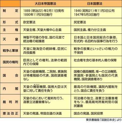 大日本帝国憲法 日本国憲法 比較 中学歴史 定期テスト対策 昭和のまとめ 第二次世界大戦後 Naver まとめ
