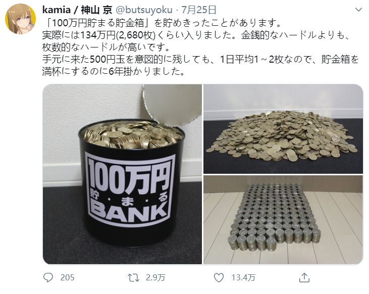 日本推特热门 存满100万日元的储蓄罐是种什么样的体验 沪江日语 微信公众号文章阅读 Wemp