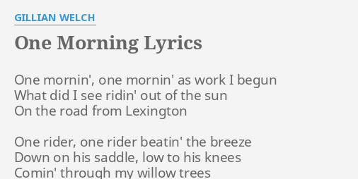 One Morning Lyrics By Gillian Welch One Mornin One Mornin